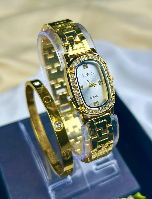 EOWAS Oval Dial Watch with Cart-ier Bracelet