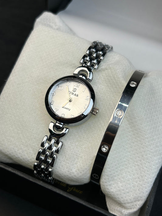 TIMAS Quartz Watch with Cartier Bracelet - Silver