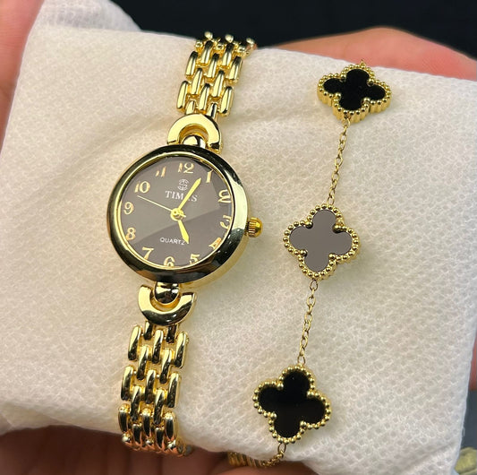 TIMAS Quartz Watch with Leaf Clover Bracelet – Golden