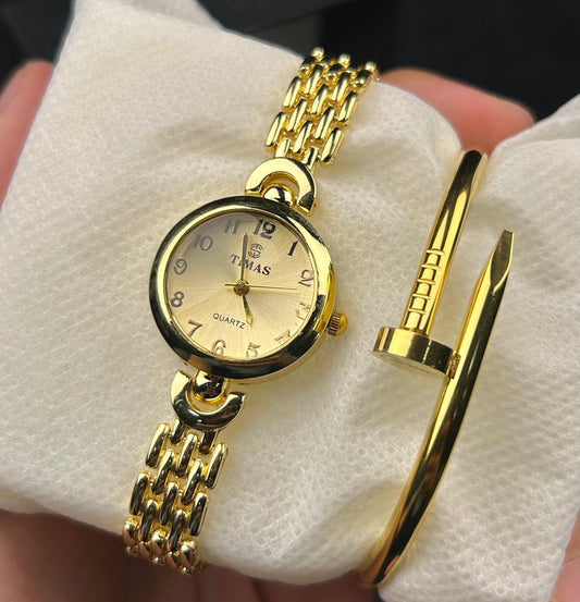 TIMAS Quartz Women Watch with Nail Armlet - Golden