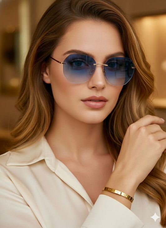 Everyday Glam Stack- Blue Horizon Sunglasses & Cart-ier Bracelet
