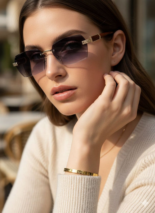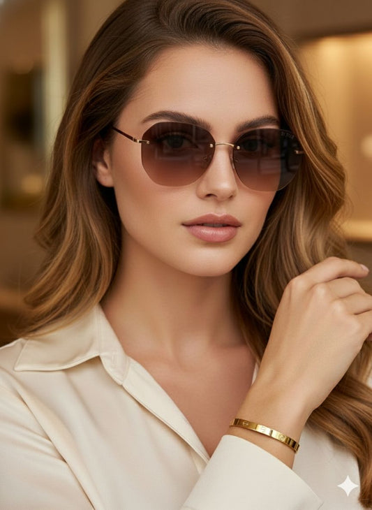 Everyday Glam Stack- Rimless Brown Shades & Cart-ier Bracelet