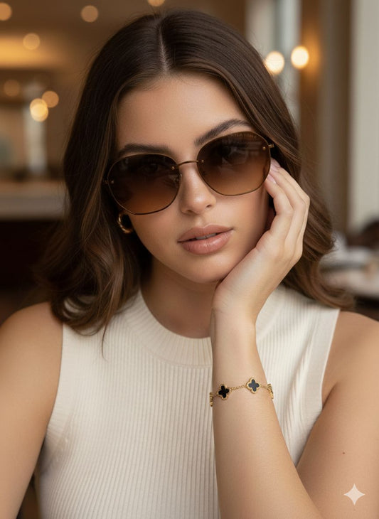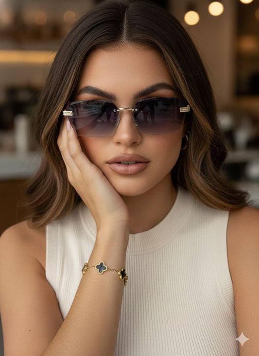 Soft Glam Clover Stack – Rimless Shades & Bracelet Set