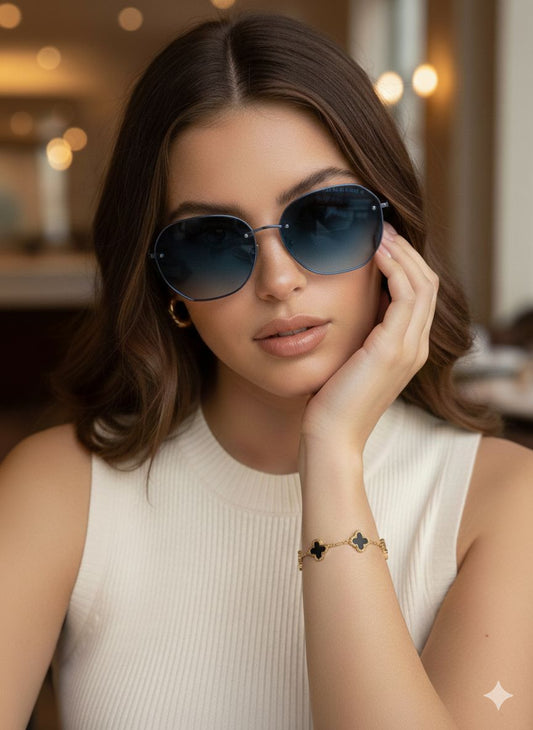 Soft Glam Clover Stack – Blue Horizon Sunglasses & Bracelet Set