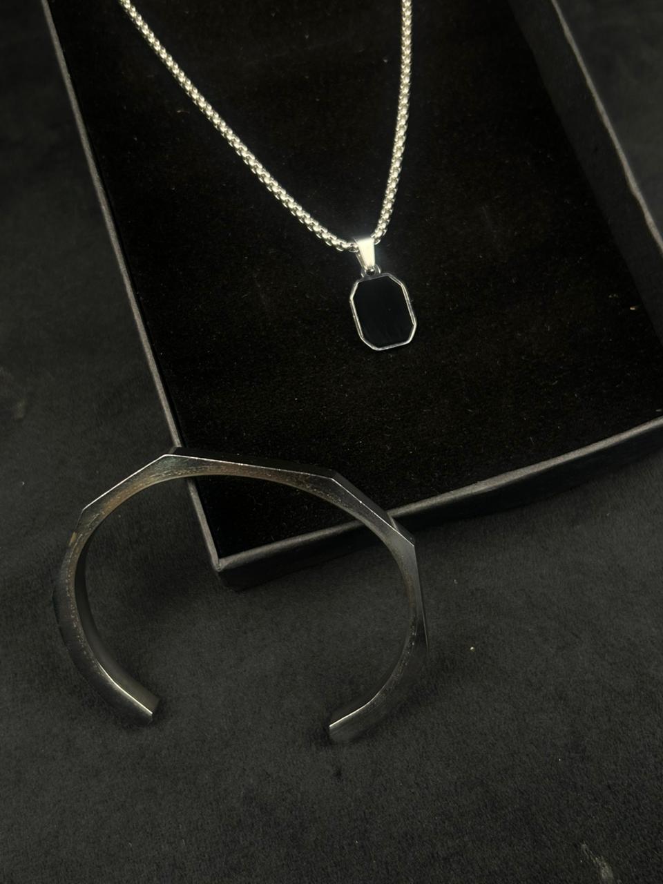 Upgrade your everyday style with the Signature Look Men’s Combo, a perfectly balanced men’s jewelry set designed for confidence, class, and daily wear. This premium combo features a sleek silver-tone chain necklace with a minimalist pendant paired with a bold black stainless steel bracelet, creating a look that’s clean, masculine, and effortlessly stylish.
